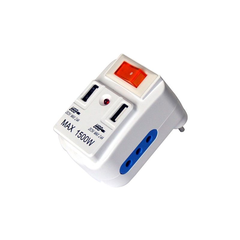 ADATTATORE SPINA 10A250VAC 2 PRESE 10A/2 PRESE USB 2,1A CON INTERRUTTORE