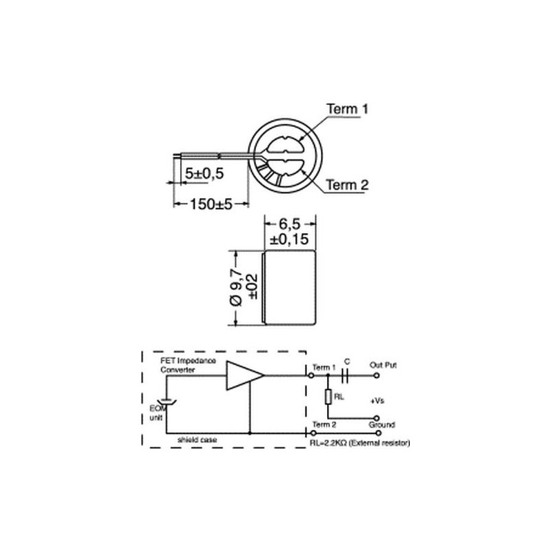 CAPSULA MICROFONICA 9,7x6,5MM 20-16Khz CON 2 FILI