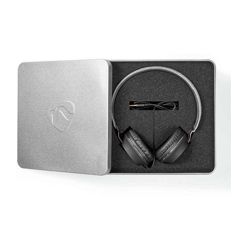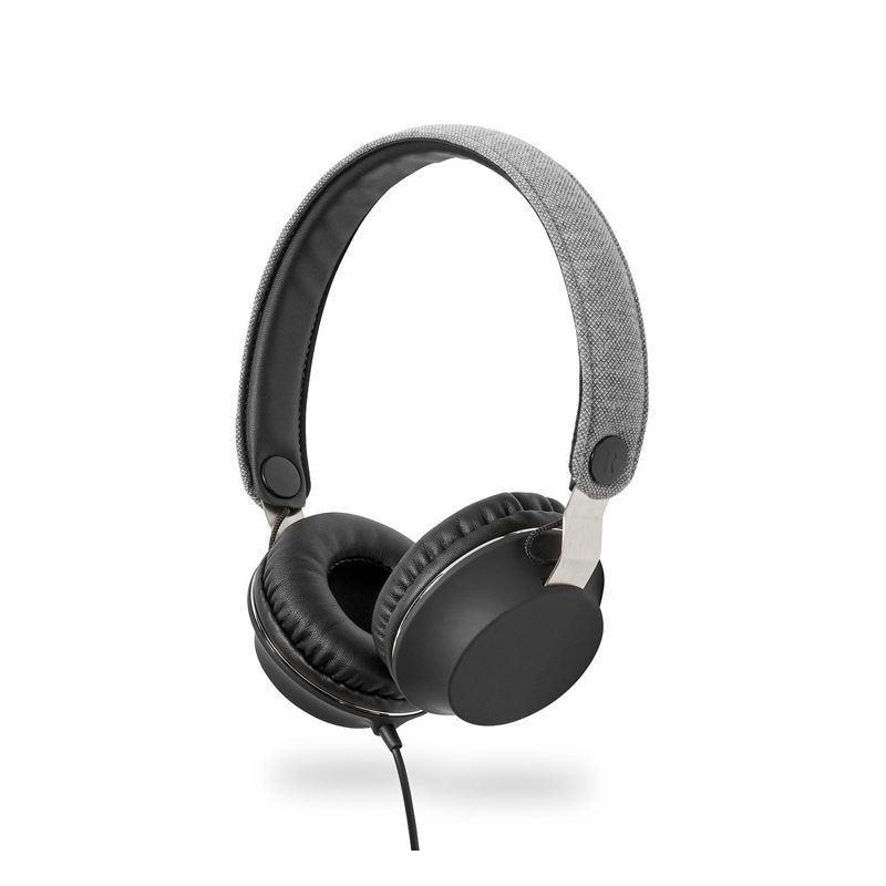 Descrizione: Cuffia stereo auricolare con filo in tessuto e sovrauricolari Nero/Grigio .