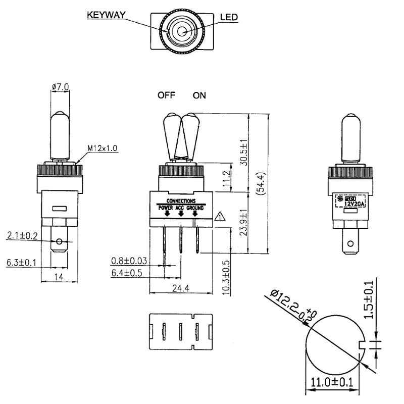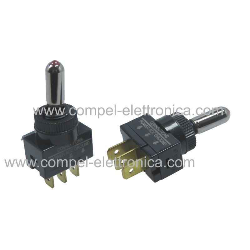 DEVIATORE A LEVA TONDA ISOLATA LUMINOSA ROSSA 20A 12VDC OFF-ON SPST