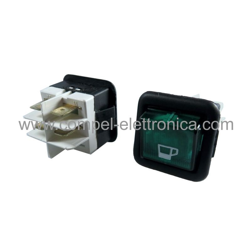 INTERRUTTORE BIPOLARE 250VAC 16A LUMINOSO VERDE PER MACCHINE DA CAFFE'