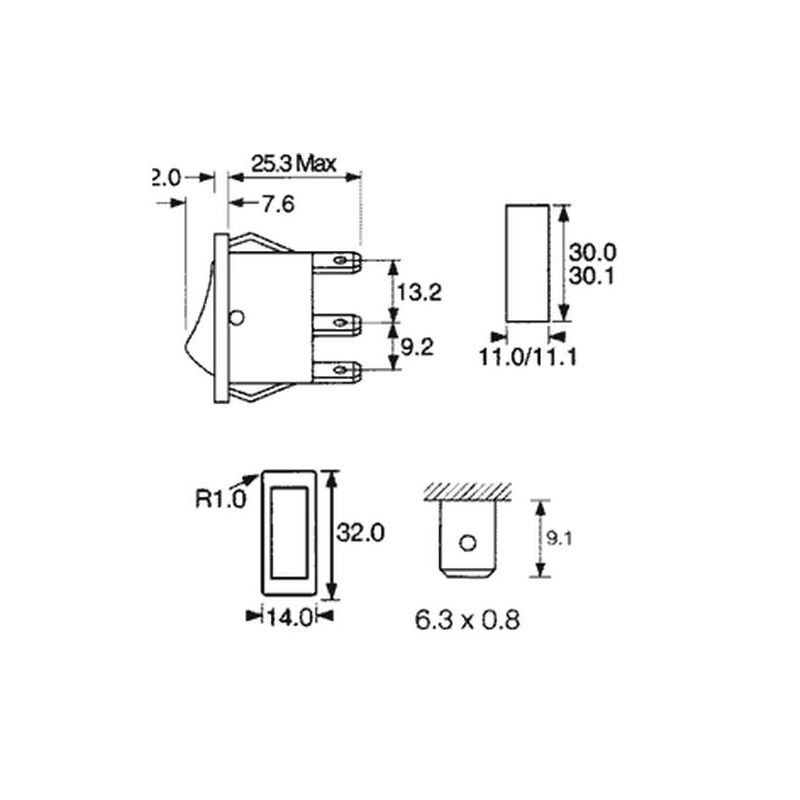 Dimensione del foro di montaggio: 30.3 x 10.6mm