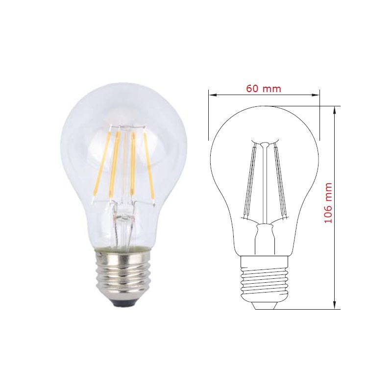 Descrizione: Lampada a bulbo trasparente in vetro a led a filamento ceramico luce bianco freddo 6K - Supporto led in ceramica - Led Wire LED San'an su base ceramica