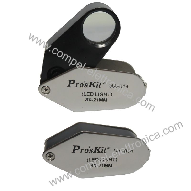 Descrizione: Lenti di ingrandimento con struttura in metallo a scomparsa. Iinterruttore di accensione interno on/off luce 1 led.