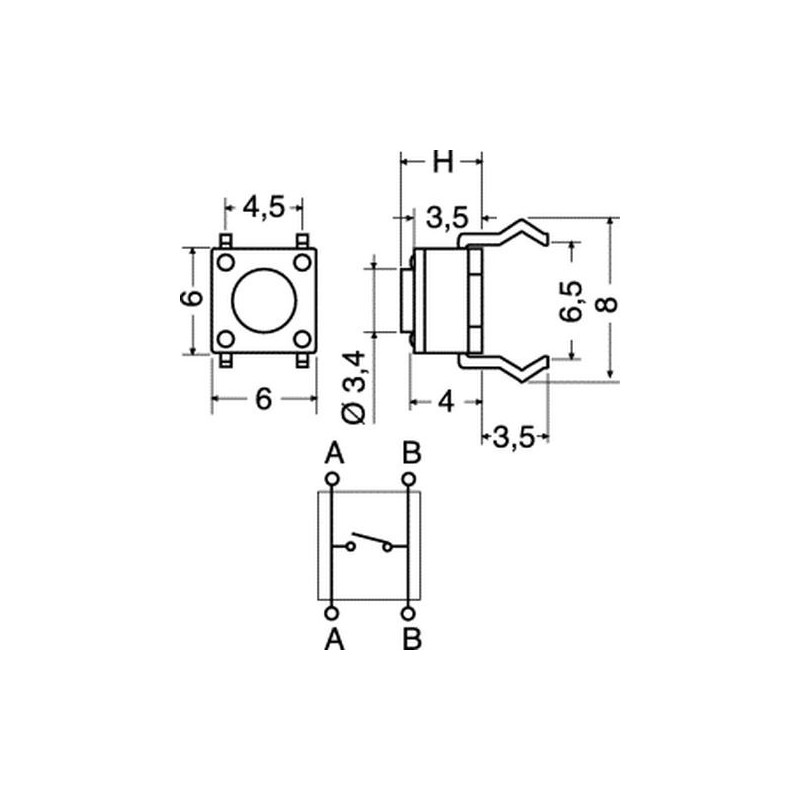 MINI PULSANTE 4 PIN C.S. 6X6X4,3H