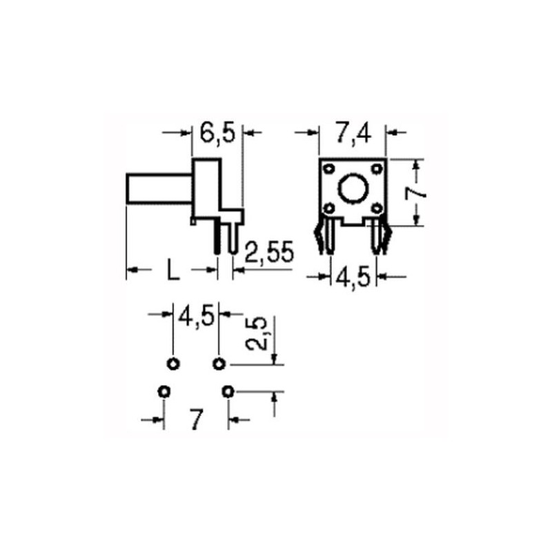 MINI PULSANTE 2PIN 2 SCHERMATURA C.S. THT 90° 7,2x7,5X10,5H