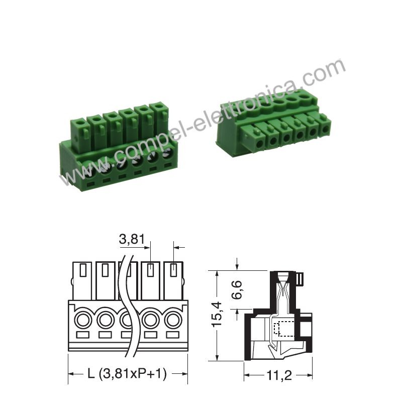 Descrizione: Morsetto europlug femmina passo 3,81mm 6 vie connettore scollegabile