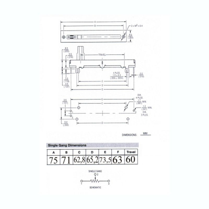 POTENZIOMETRO 10K 60MM SLIDER MONO LOGARITMICO