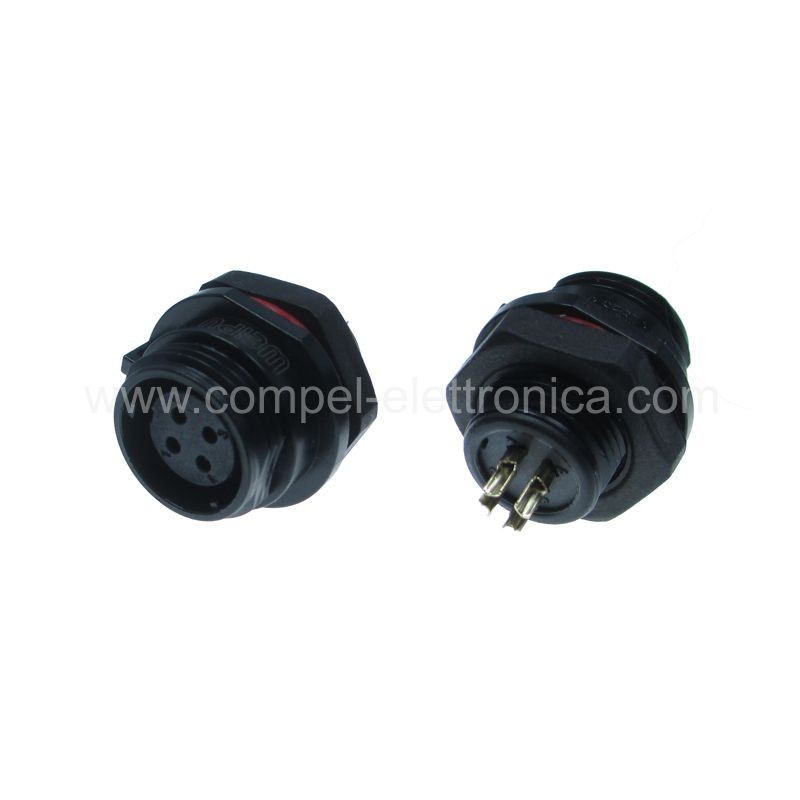 Descrizione: Connettore waterproof presa pannello femmina 4 poli filettatura esterna