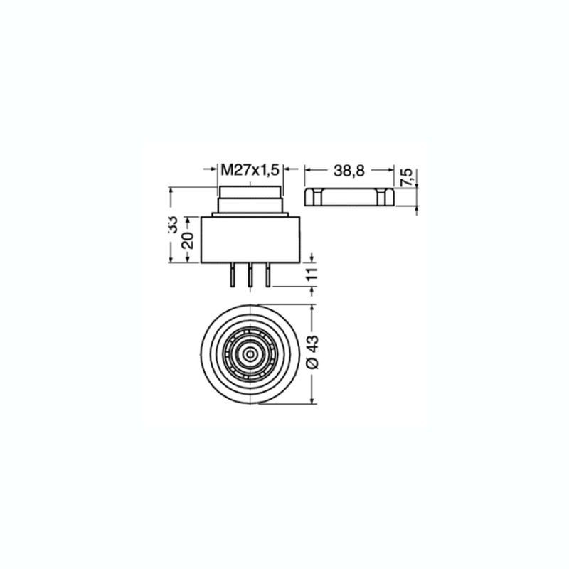 DIMENSIONI: DIAMETRO 44 mm DIAMETRO CICALINO 27 mm ALTEZZA (senza faston) 34 mm