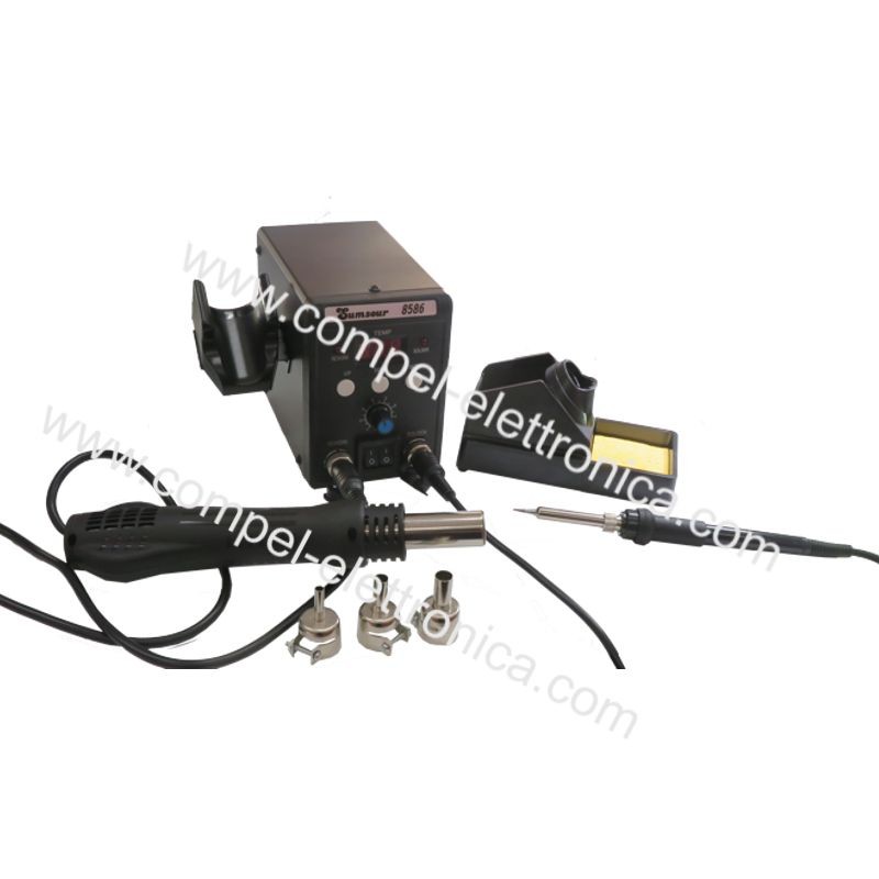 Descrizione: Stazione saldante e dissaldante 8586 ad aria calda per SMD parte stazione di saldatura con stilo da 50w con display led (2 IN 1)