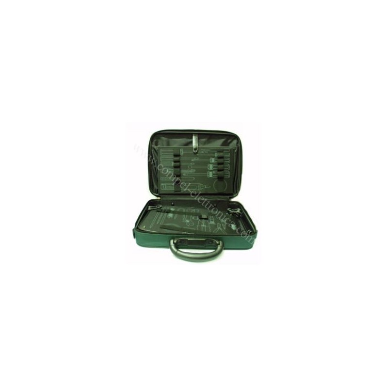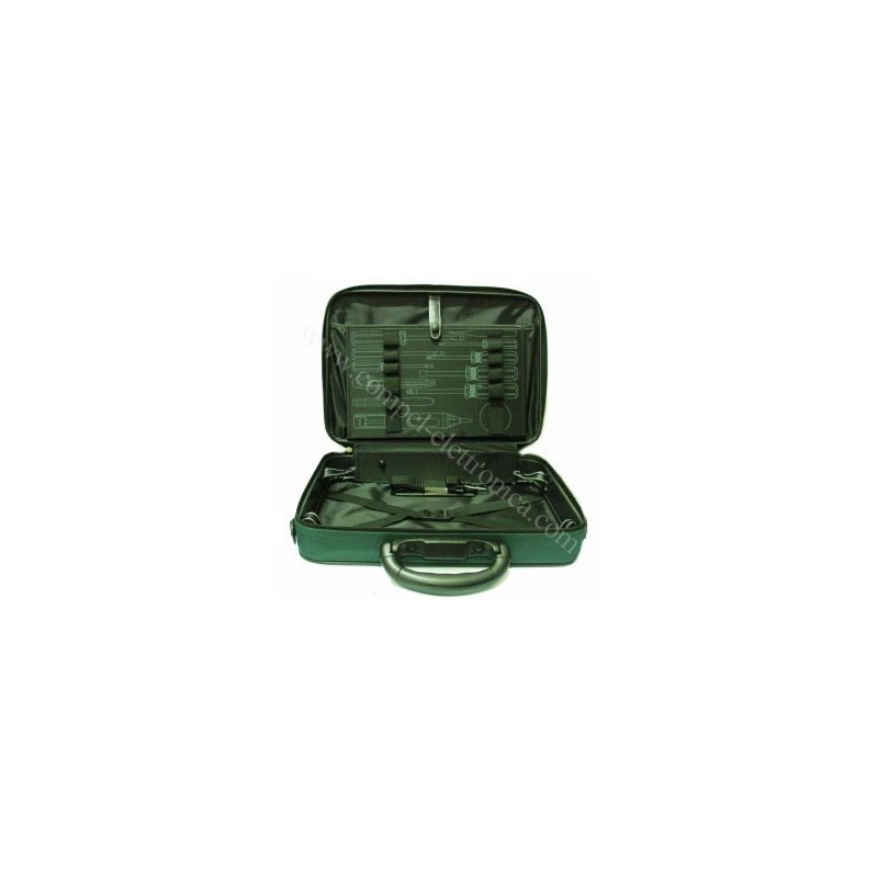 Descrizione: Borsa vuota verde porta attrezzi e porta PC, 2 vani porta documenti esterno ed interno, 1 vano estraibile come porta attrezzi e un comodissimo scomparto da utilizzare come porta notebook.